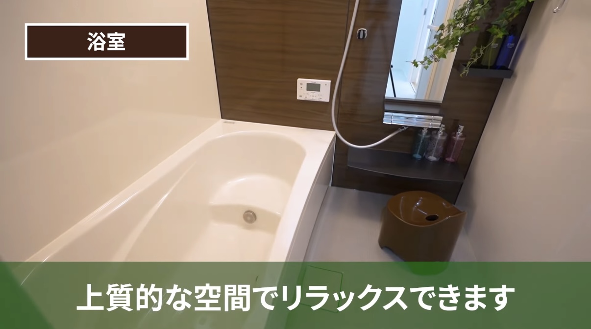 浴室は、標準的な1坪サイズのシステムバスで、清掃性と快適性を考慮した設計です。壁面や浴槽には水アカが付きにくい素材が採用されているため、日々の掃除の手間を軽減できます。