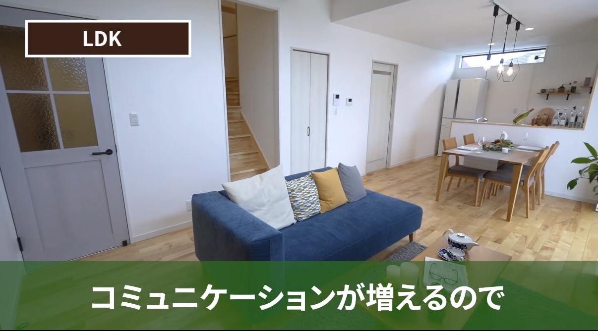また、階段が独立したスペースとして区切られないことで、リビング全体がより開放的に広く感じられます。家族の気配を常に感じられ、安心感と温かみのある住まいです。