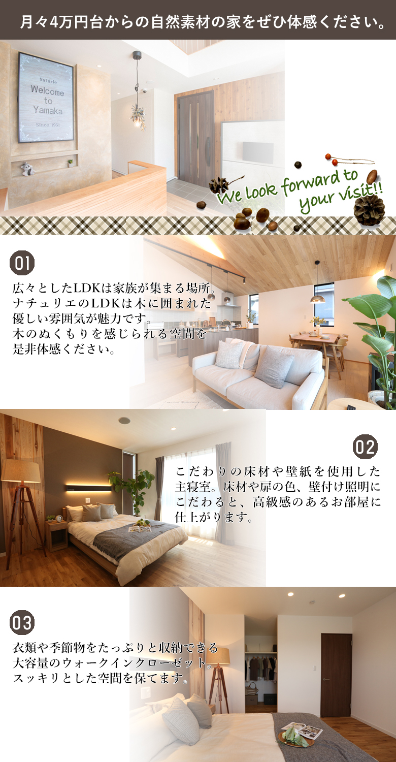 ヤマカ木材では、自然素材を使用しつつもコストパフォーマンスを重視したプラン展開をしています。