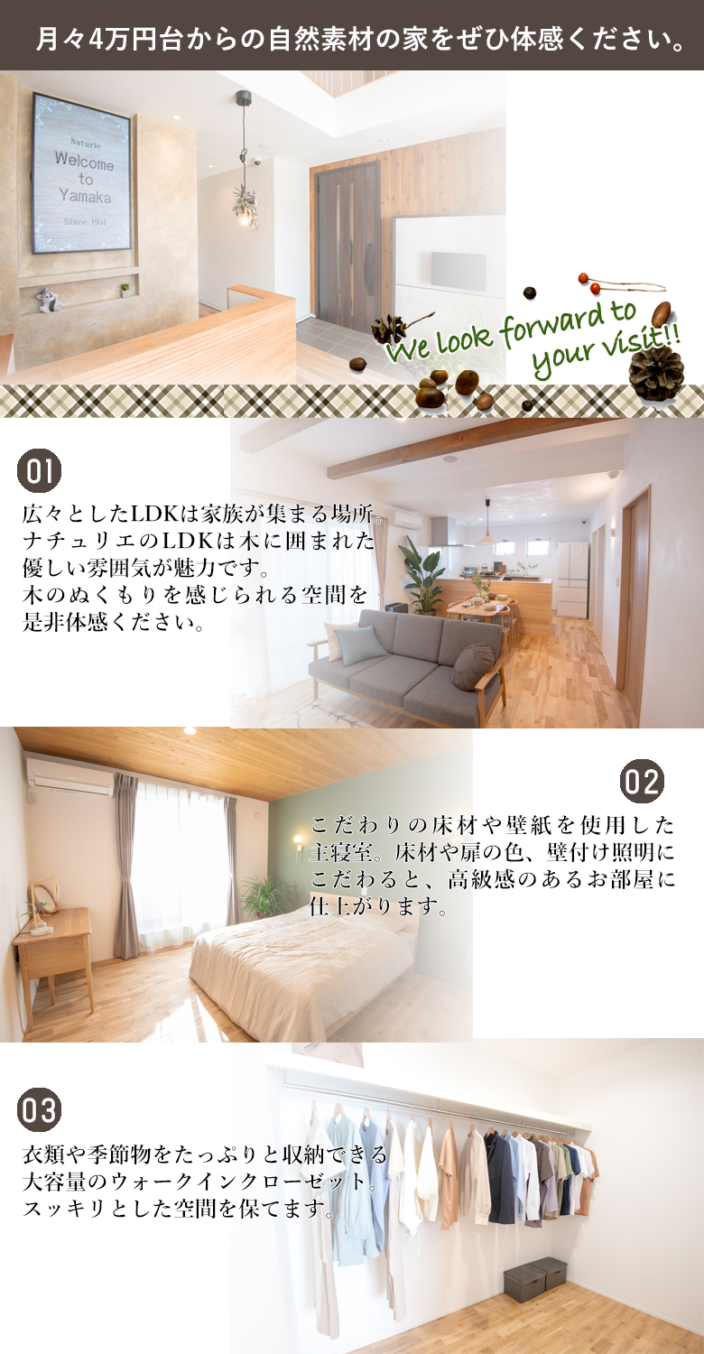 ヤマカ木材では、自然素材を使用しつつもコストパフォーマンスを重視したプラン展開をしています。