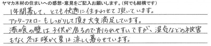 家づくり1周年を迎えられたオーナー様、先日、お引き渡しをさせて頂いたオーナー様の生の声です。