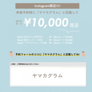 &ご意見ご質問欄に【ヤマカグラム】と記載いただくと最大¥10,000分のQUOカードを進呈いたします。