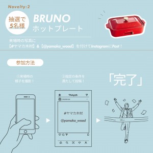02 Instagram投稿キャンペーン:「BRUNO ホットプレート」が抽選で5名様に!