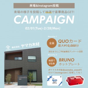 ⇒来場時の写真に【#ヤマカ木材】&【@yamaka_wood】を付けて投稿