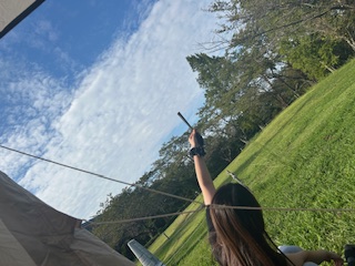 とんぼがたっくさんとんでいてお玉の先にとんぼがとまらないか一生懸命腕を伸ばし続ける娘!(笑)