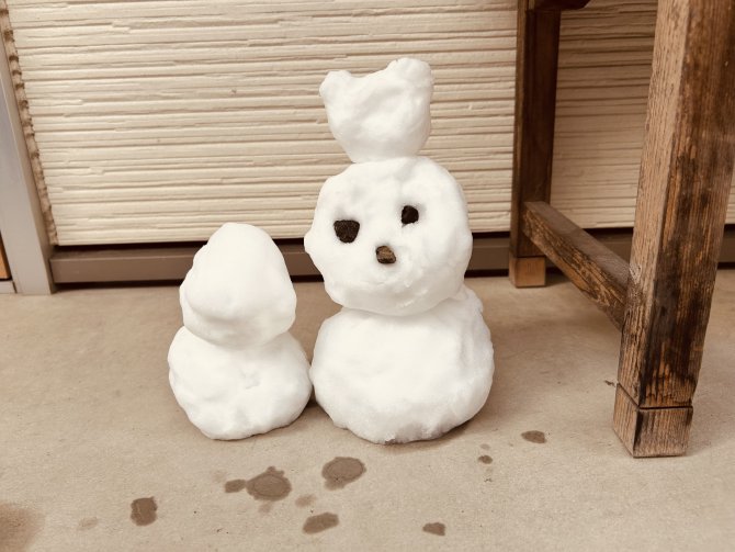 雪だるまを見てこっそり仲間を作って、またそれをみたほかのスタッフがこっそり作って仲間入りさせて...と、寒い中にも心はあたたまる事をするスタッフたちに囲まれて幸せな気持ちになりました♪