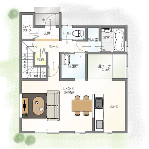 玄関⇔洗面⇔キッチン 家事ラク回遊動線の家