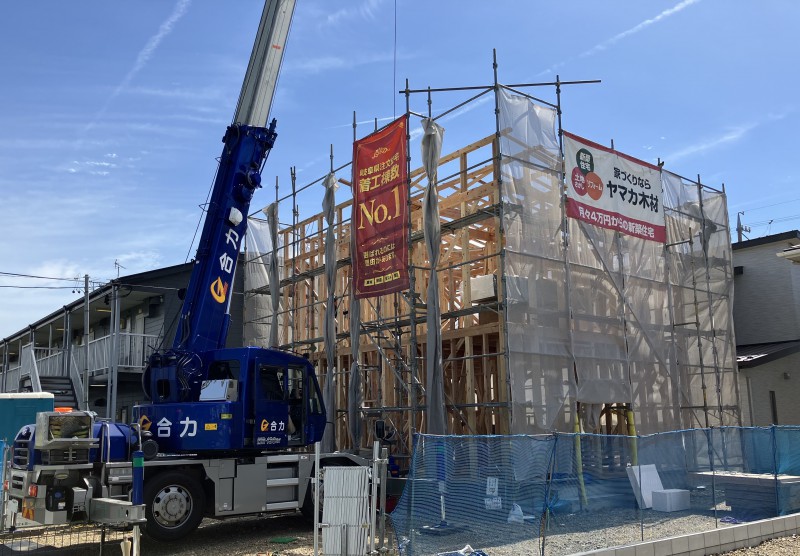 大工さんをはじめ、職人さん達に作業して頂き、無事に上棟作業を終えることができました。